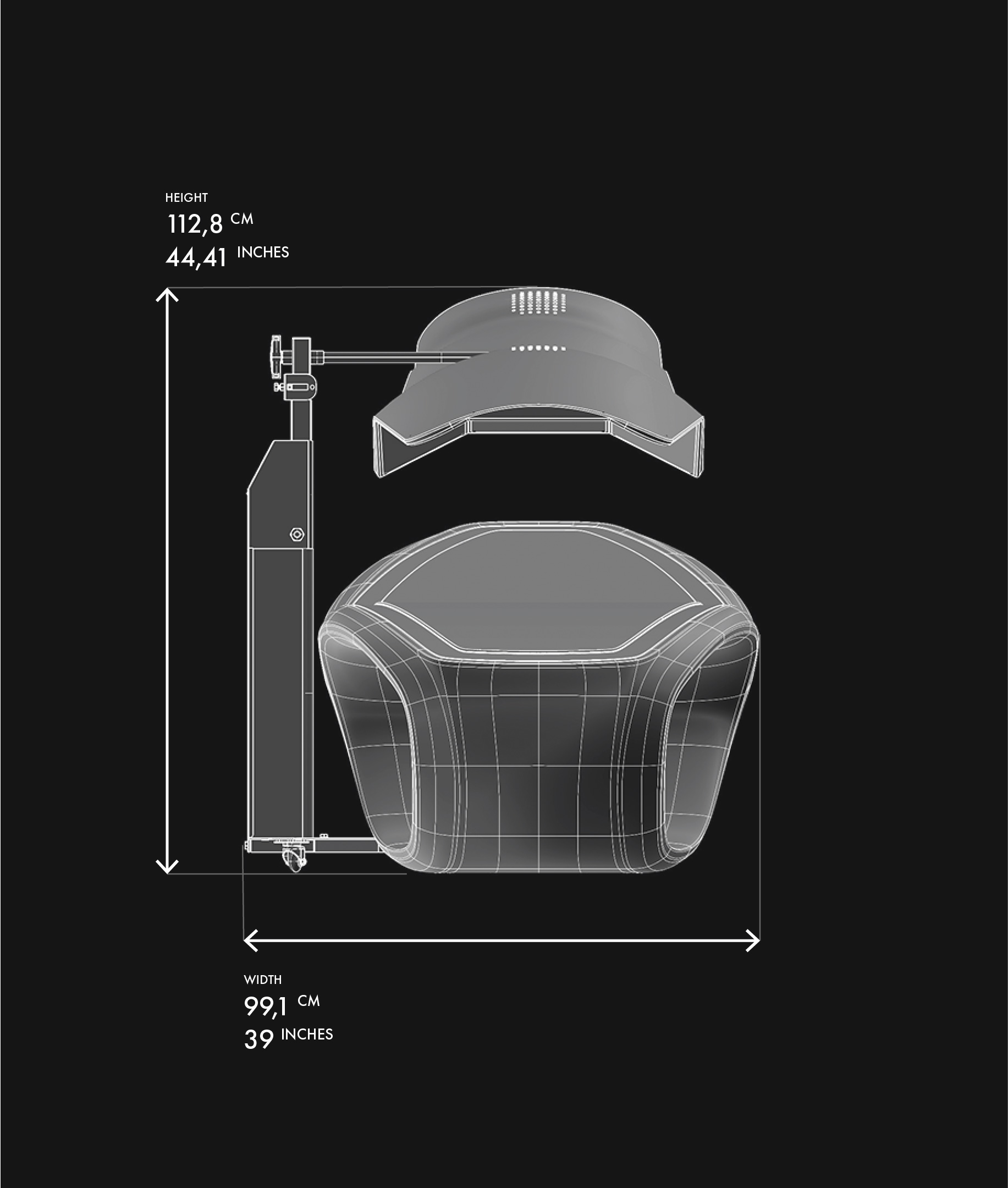 Select your ideal temperature (up to 75∘C) and session duration for a fully personalized PEMF therapy experience right at home. A soft, integrated head pillow ensures maximum comfort every single time.